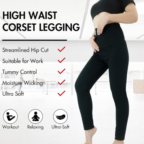 Black High Waisted Sweat Shaper Sauna Leggings L Size