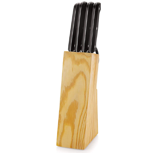 Plastic 6 Pc Knife Set Wood Stand With Knife And Scissor
