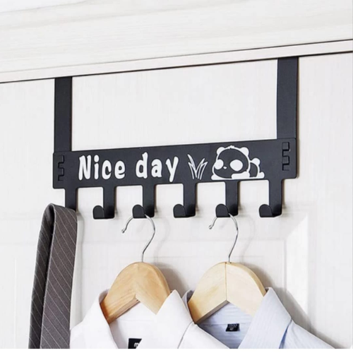 Black Metal No Drill Door Hook Cloth Hanger(6 Hooks)